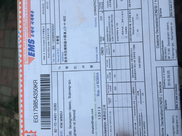 연길에서 물건잘받앗어요