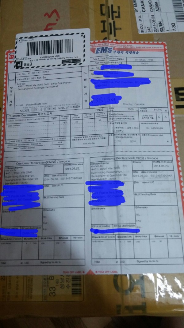 택배에 old clothes라고해쥬시는 센스!
